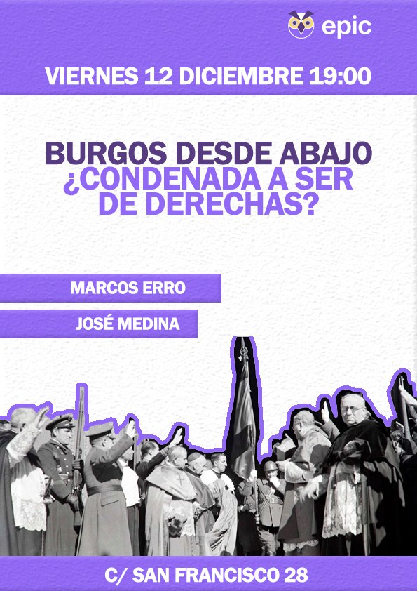 Último EPIC Burgos de 2025Los autores de "Gamonal la Historia desde Abajo" hablarán sobre la realidad social de nuestra ciudad y si sólo somos una ciudad de "curas y militares"No te lo pierdas!