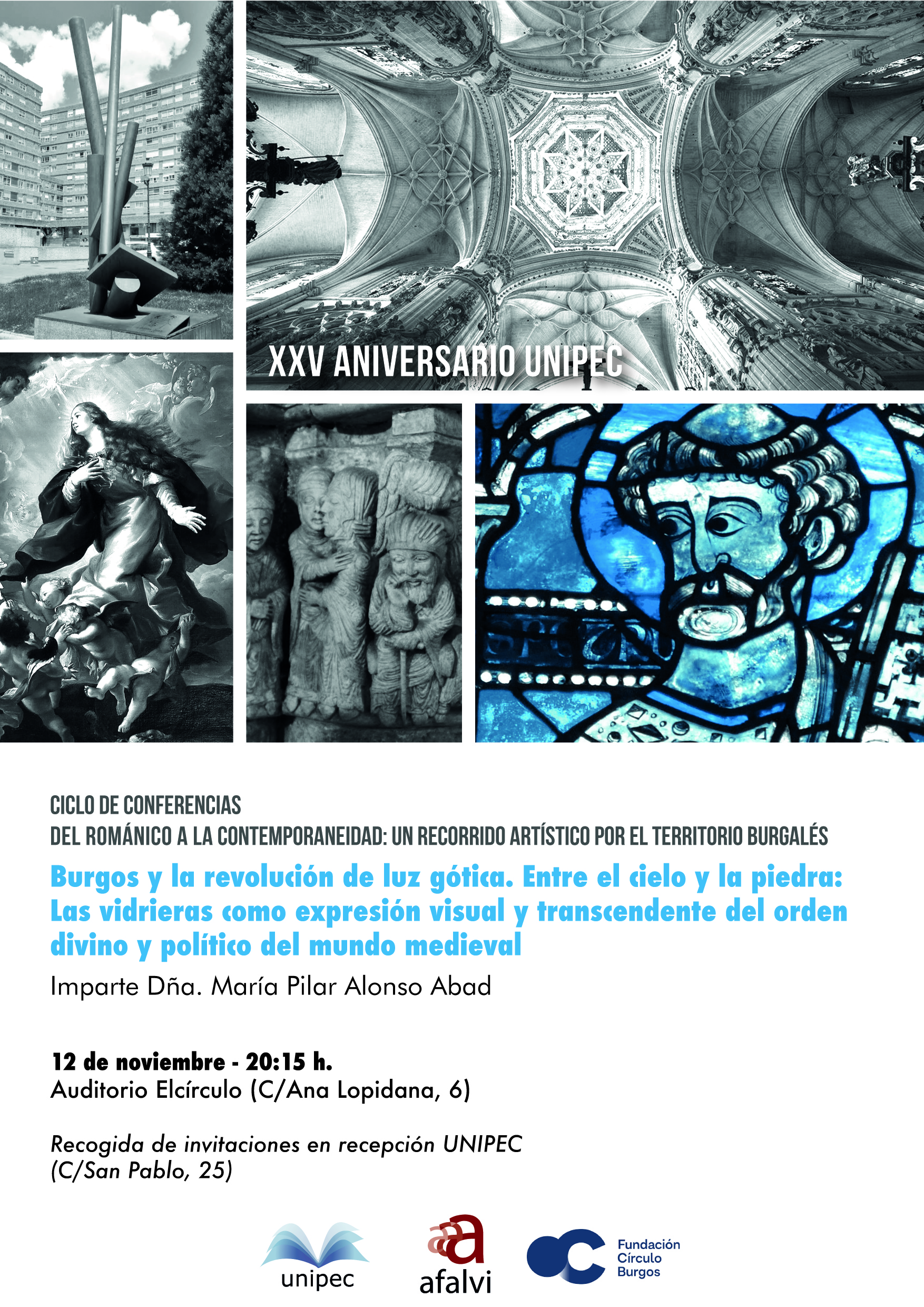 Segunda conferencia del ciclo "Del Románico a la Contemporaneidad: un recorrido artístico por el territorio burgalés". Dña. María Pilar Alonso Abad impartirá la segunda conferencia del ciclo en el Auditorio "Elcírculo" en la calle Ana Lopidana, 6.