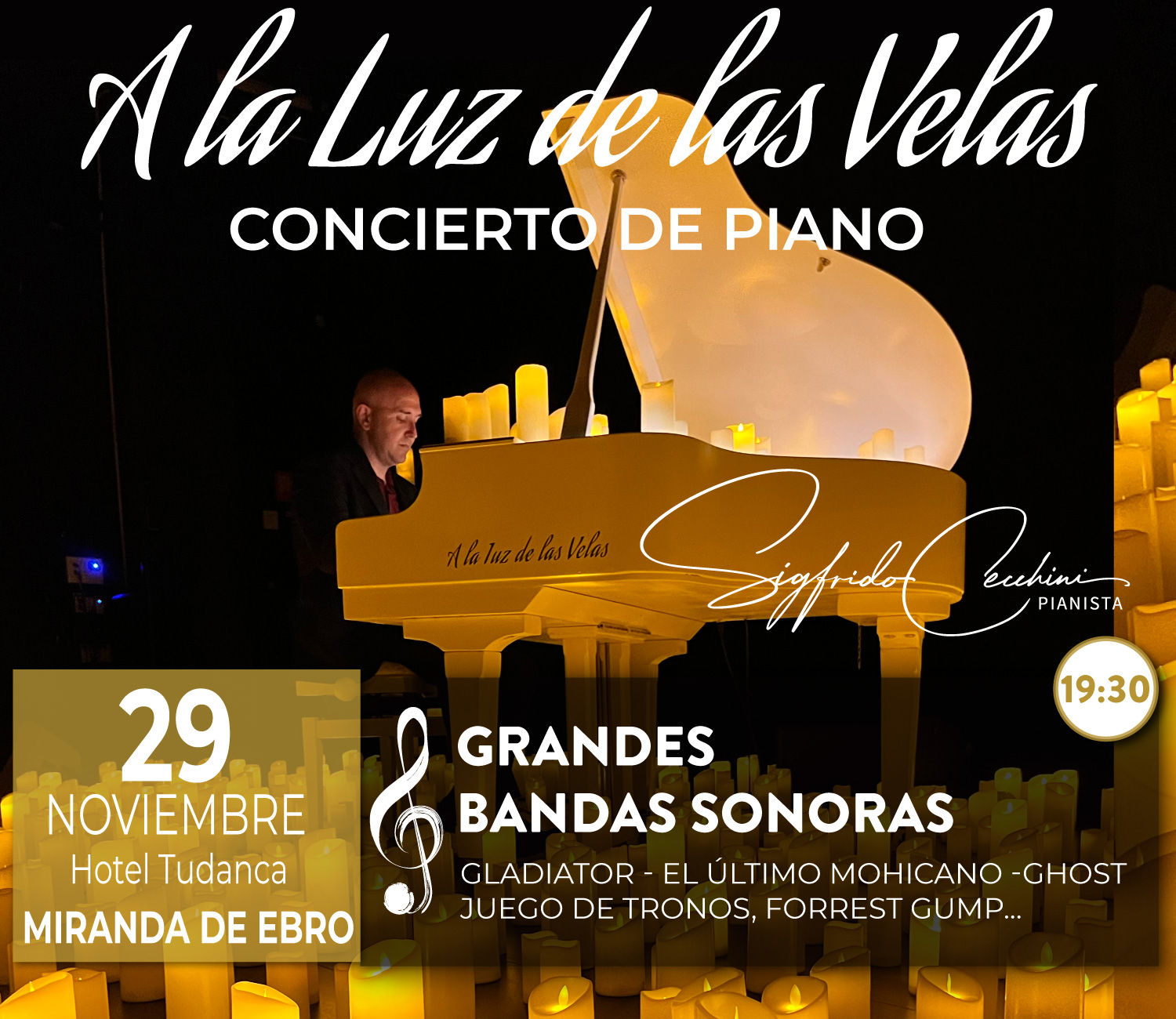 El maestro Sigfrido Cecchini, con su sensibilidad y virtuosismo, interpretará un repertorio cuidadosamente seleccionado que te transportará a las escenas más icónicas de la gran pantalla. Desde la épica de Hans Zimmer (Gladiator) hasta la emoción de Titanic, pasando por la delicadeza de Intocable o la magia de El Señor de los Anillos.
