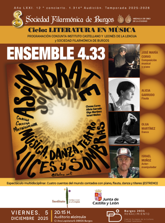 ENSEMBLE 4.33, espectáculo multidisciplinar. Cuatro cuentos del mundo contados con piano, flauta, danza y títeres (ESTRENO).