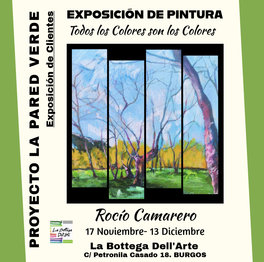 La artista de Salas de los Infantes, Rocío Camarero, nos trae una colección de obras cargadas de color y expresividad, titulada, muy acordemente " Todos los colores son los colores".Teniendo como tema común el paisaje, lo plasma con diferentes técnicas y estilos, pudiendo erse así, óleos y acrílicos tendentes al impresionismo, y collages y pasteles mas abstractos .