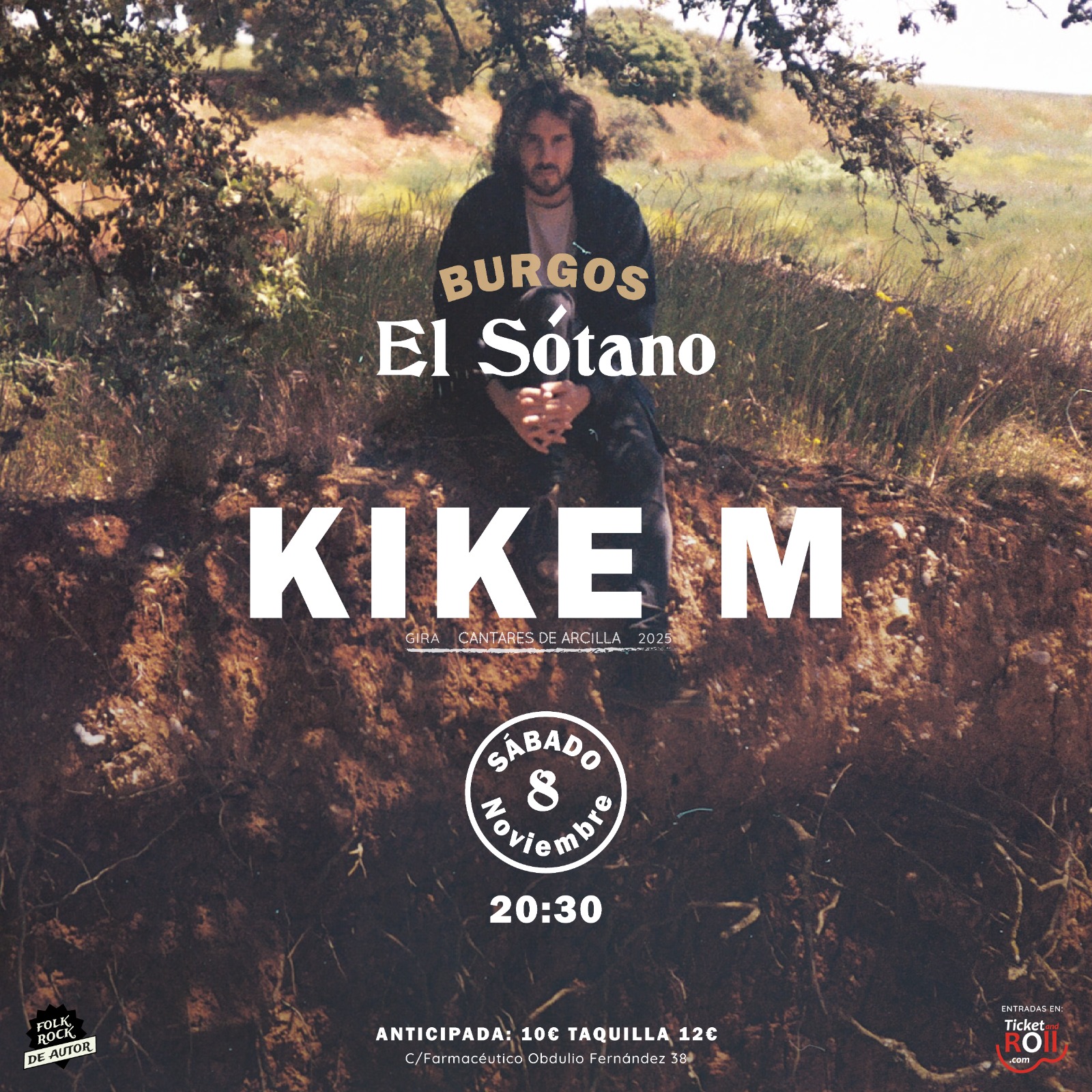 KIKE M vuele a Burgos para interpretar las canciones de su segundo album "Cantares de arcilla" producido por Iñaki "Uoho" (Extremoduro, Platero y tú) en un formato más íntimo. El compositor salmantino ha podido llevar su música a lo largo de este año a escenarios como el festival Sonorama Ribera, el Festival de la Luz de La Coruña o el auditorio CAEM de Salamanca. Esta es una oportunidad de disfrutar de la crudeza de su folk rock de autor cara a cara.