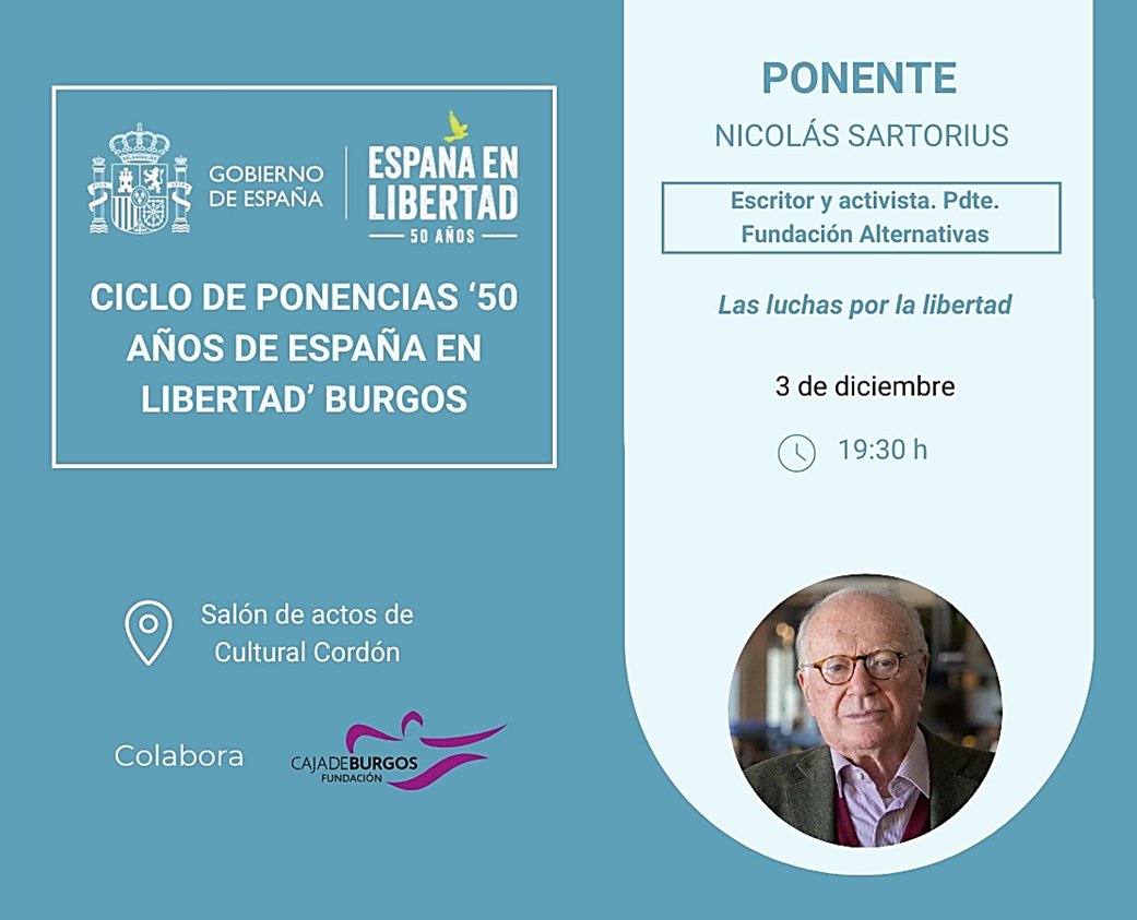 En el marco de las conmemoraciones de "50 años de España en Libertad", Nicolás Sartorius, presidente de la Fundación Alternativas, disertará sobre "Las luchas por la Libertad"