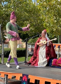 El dúo formado por Estrella García y Carlos de la Torre son “Prima voce”, juglares, cantantes y poetas que recorren la floreciente tierra castellana para esparcir sus versos y sus tonadas con la esperanza de iluminar las sonrisas del público. En esta función declamarán, contarán y es cantarán sobre “El arte de la corte”. Con esta propuesta ganaron el primer premio del Concurso de Juglares de la Semana Cidiana de Burgos de 2024.
