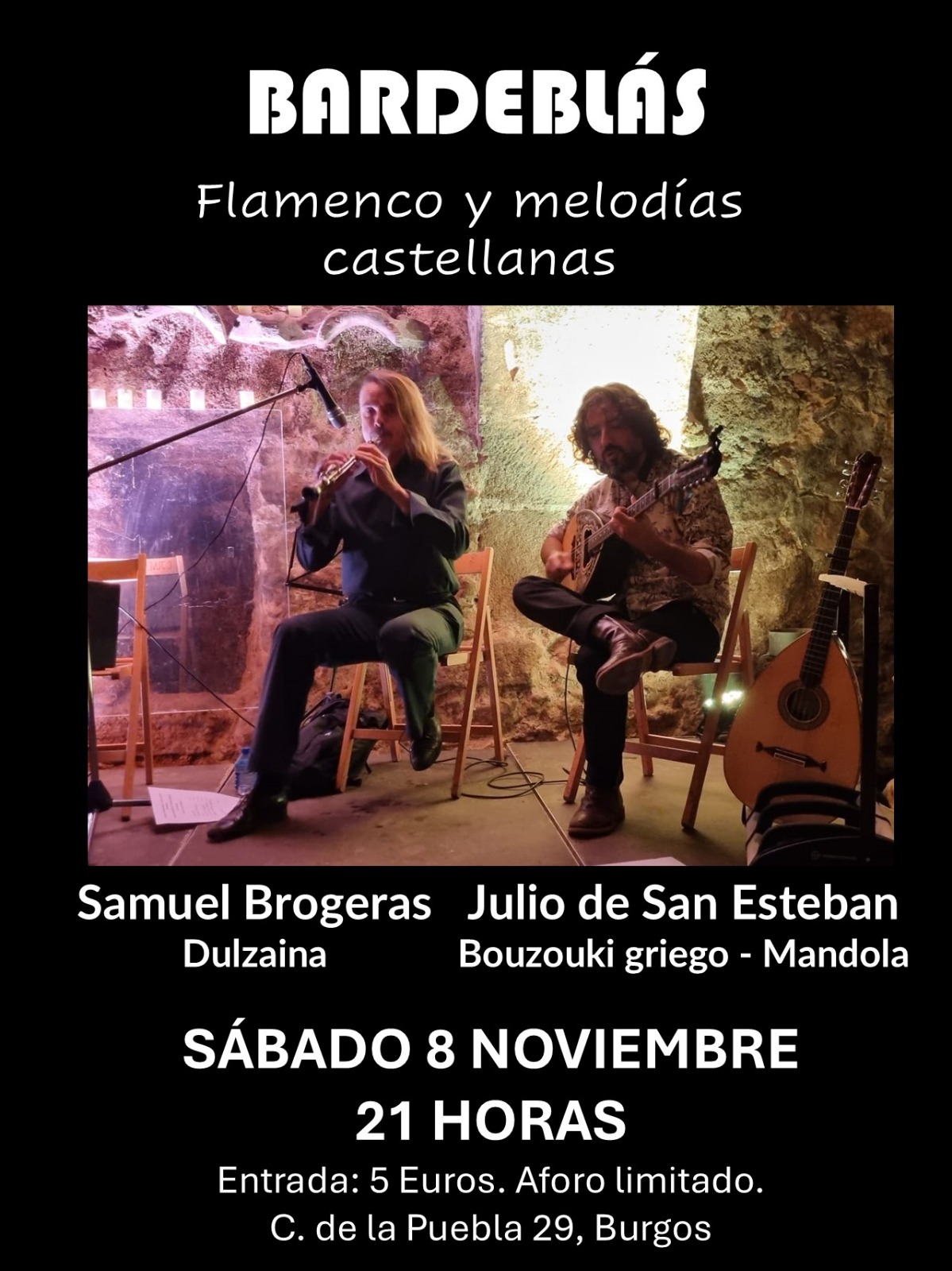 Concierto FLAMENCO Y MELODÍAS CASTELLANASSamuel Brogueras DULZAINAJulio se San Esteban BOUZOUKIgriego MANDOLINA