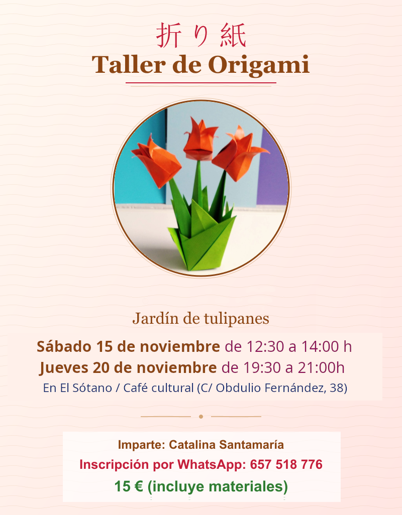 En este taller, la artista burgalesa Catalina Santamaría nos muestra el maravilloso arte de origami (papiroflexia) que consiste en convertir un papel cuadrado en una figura. En este caso doblaremos tulipanes con su tallo. Es un plan maravilloso para estos días de lluvia.