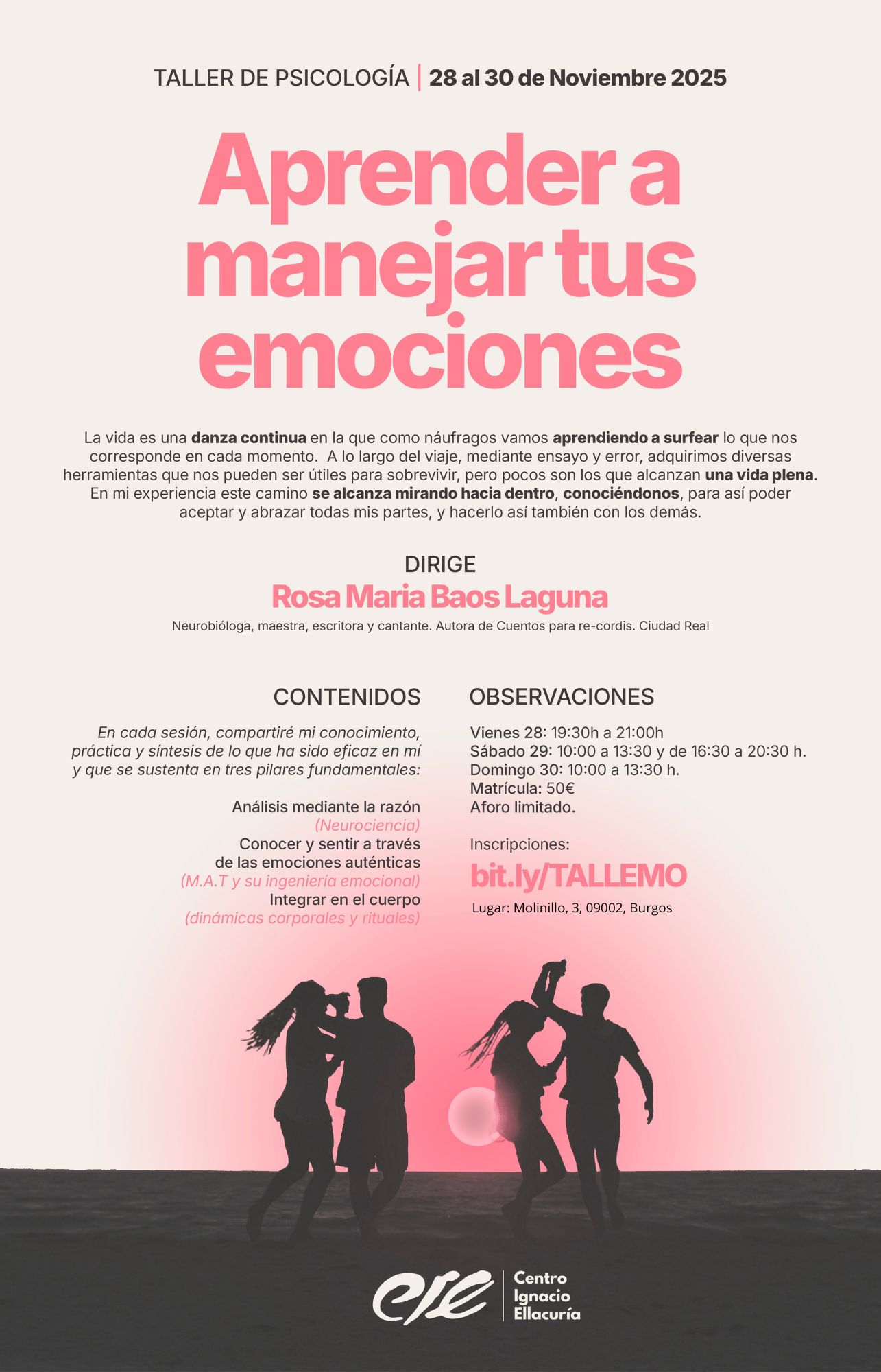 Vive un taller transformador de tres días para reconectar contigo, integrar tus emociones y relacionarte desde la autenticidad. Rosa María Baos Laguna te guía con neurociencia, trabajo emocional y dinámicas corporales en un proceso profundo y práctico.