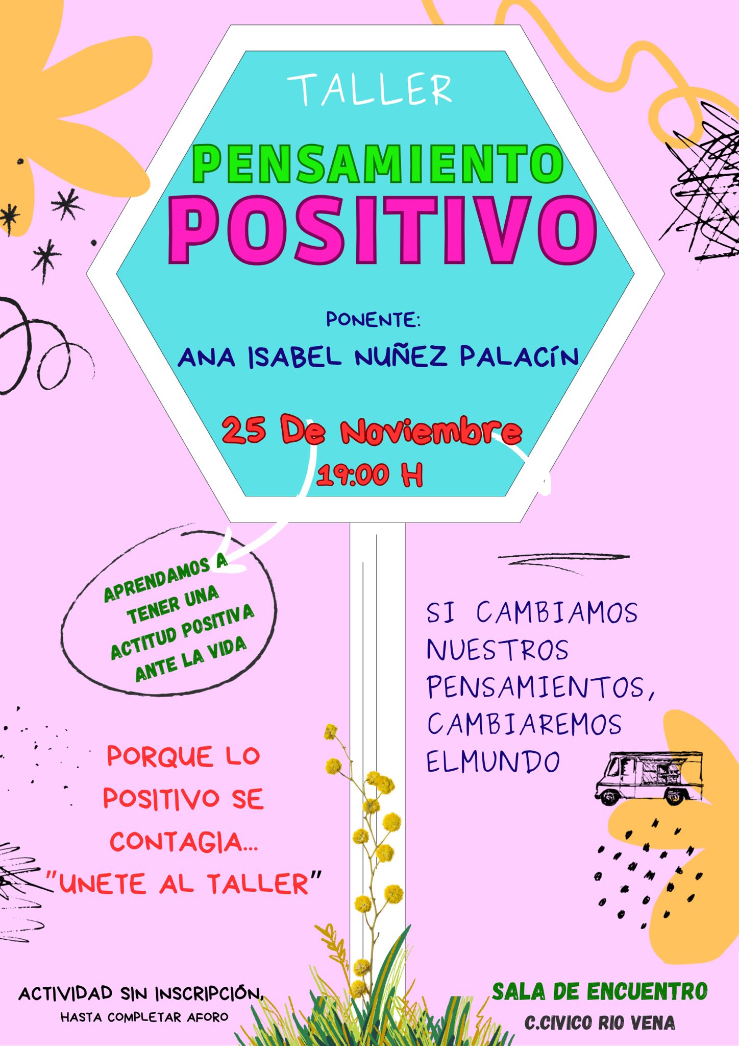 Taller Pensamiento Positivo en Centro Cívico Río Vena. Martes 25 Nov. a las 19:00h-Encuentro con Ana Isabel Núñez Palacín