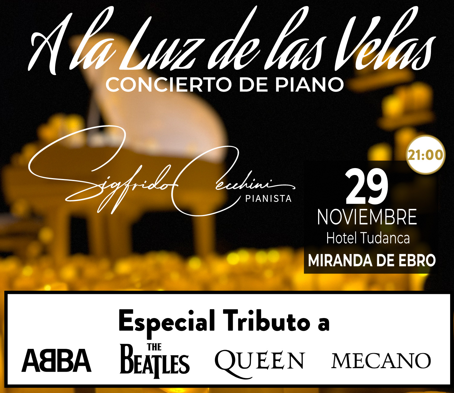 Por primera vez en Miranda de Ebro, llega una de las propuestas más especiales de A la Luz de las Velas. Una velada única con las melodías inmortales de ABBA, The Beatles, Queen y Mecano y la cálida luz de 1.500 velas.