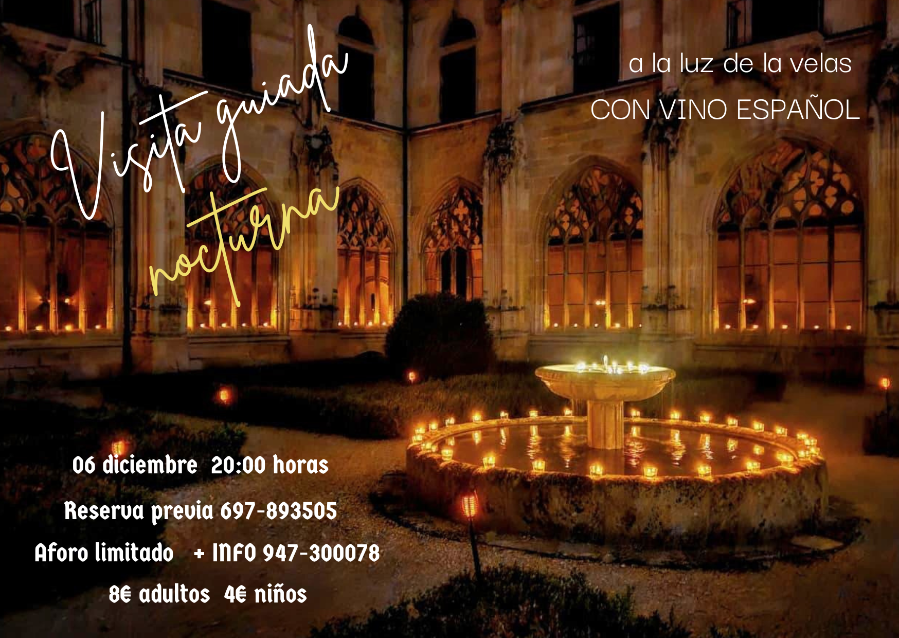 Visita guiada al monasterio de S. Salvador con el claustro iluminado a la luz de las velas, y vino español al finalizar en el mismo claustro.